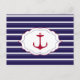Carte Postale Bleu foncé bleu marine rayures rouge Ancre