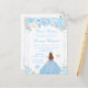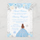 Cette invitation élégante et glamour pour un anniversaire sweet sixteen hivernal présente une belle princesse aux cheveux brun-roux et à la peau claire dans une robe de bal bleue. Le texte combine une écriture manuscrite et des polices modernes sans serif pour un look classique et sophistiqué. Les arrangements floraux, les flocons de neige et les confettis argentés créent le mélange parfait de rustique et de chic.
