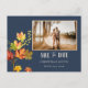 Bleu marine Élégant Photo de feuilles sauvages Carte de conservation de la date