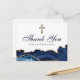 Carte Postale Bleu marine Or Croix chrétienne personnalisée Merc