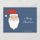 Une carte postale avec un Père Noël et son bonnet rouge sur fond bleu nuit et des textes personnalisables "Joyeux Noël", nom de famille et un message au dos. Une petite attention à envoyer à votre famille et vos amis pour les fêtes de fin d'année. Vous pouvez également l’utiliser pour vos vœux en entreprise et l’envoyer à vos clients !