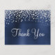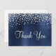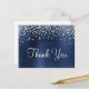 Créez votre propre carte de remerciement avec un effet ombré bleu foncé en aluminium faux brossé et des confettis diamants argentés.