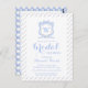 Carte postale de Fête des mariées de la Grandmillenial de Monogram Crest de Blue Wedgwood - personnalisez cette invitation à célébrer n'importe quel événement dans la vie. Ajoutez la mariée pour être nom et monogramme à la crête. Ou personnalisez-vous pour tout événement festif. Tout le texte personnalisable.