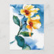 cette aquarelle fleurie a des fleurs jaunes, d'une profondeur lâche, avec des feuilles verts bleus. Avec un large trait de brosse d'aquarelle bleu pour que les fleurs se démarquent.