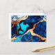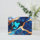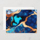Carte Postale Bleu tendance en or faux marbre