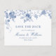 Elégant Jardin Vintage Bleu Français Mariage Floral Enregistrer la Date Carte Postale.