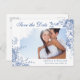Elégant Jardin Vintage Bleu Français Mariage Floral Enregistrer la Date Carte Postale.