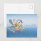 Carte postale bleue à broderie florale Little Bird