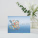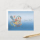 Jolie carte postale bleue avec broderie florale de petit oiseau