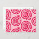Carte postale dans un motif imprimé en bloc, basé sur un coquillage en spirale, en rose fuchsia profonde sur un arrière - plan rose corail pastel