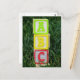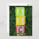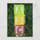 Des blocs ABC verts, jaunes et rouges se dressent dans l'herbe.