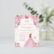 Cette invitation d'anniversaire sweet sixteen élégante et glamour présente une belle princesse aux cheveux blonds dans une robe de bal rose pâle. Le texte combine une écriture manuscrite et des polices sans serif modernes pour un look classe et sophistiqué. Les arrangements floraux, le papillon et les confettis dorés créent le mélange parfait de rustique et de chic.