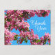 Pretty summery "thank you" postcards with pink blossom and blue sky.