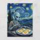 Carte Postale Blue Alien Eating Fried Eggs Faux Van Gogh