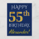 Carte Postale Blue, Faux Gold 55e anniversaire + Nom personnalis