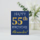 Ce design simple et personnalisé de carte postale d'anniversaire comporte le message "HAPPY 55th BIRTHDAY", avec le "55th" ayant une apparence fausse or. L'avant comporte également un nom personnalisé et un arrière - plan bleu. Le dos contient un message d'anniversaire personnalisé, ainsi que l'adresse personnalisable du destinataire de la carte postale d'anniversaire. Il pourrait être envoyé à quelqu'un qui célèbre son cinquante-cinquième anniversaire. [~Z0000074]