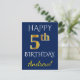 Ce design simple et personnalisé de carte postale d'anniversaire comporte le message "HAPPY 5th BIRTHDAY", avec le "5th" ayant une apparence fausse or. L'avant comporte également un nom personnalisé et un arrière - plan bleu. Le dos contient un message de voeux d'anniversaire personnalisable, ainsi que l'adresse personnalisable du destinataire de la carte postale d'anniversaire. Il pourrait être envoyé à quelqu'un qui célèbre son cinquième anniversaire. [~Z0000074]