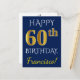 Ce design simple et personnalisé de carte postale d'anniversaire comporte le message "HAPPY 60th BIRTHDAY", avec le "60th" ayant une apparence fausse or. L'avant comporte également un nom customisé et un arrière - plan bleu. Le dos contient un message de voeux d'anniversaire personnalisable, ainsi que l'adresse personnalisable du destinataire de la carte postale d'anniversaire. Il pourrait être envoyé à quelqu'un qui célèbre son soixantième anniversaire. [~Z0000074]