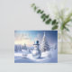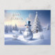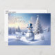 Carte Postale Blue Hat Snowman Christmas Tree Holiday Postcard