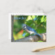 Un beau pot bleu perche gracieusement sur une branche, dressé contre un bokeh arrière - plan vif de verts, rouges, jaunes et bleus créés par des feuilles et des fleurs éclairés au soleil. Ce design saisit le charme vivant de l'un des visiteurs de jardins les plus enthousiastes de la nature. Un modèle de texte personnalisable vous permet de personnaliser la carte postale avec votre propre salutation, emplacement ou message, parfait pour les amoureux d'oiseaux, les amoureux de la nature ou toute personne qui aime envoyer des notes joyeuses. Photographie d'origine d'oiseaux par JLW_PHOTOGRAPHY.
