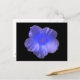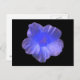 Cette carte postale présente une photo d'une fleur de Nasturtium. La photo a été colorée artificiellement, ce qui donne une fleur qui a une gamme de différents tons de bleu, allant du clair au centre à un mélange plus subtil de blues pâles et de violets sur les pétales extérieurs. L'arrière - plan est noir.