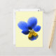 Cette carte postale présente une photo d'une fleur sauvage de Pansy. La photo a été colorée artificiellement, ce qui donne un sansy aux tons clairs et foncés de bleu et un centre jaune pâle. L'arrière - plan est jaune pâle pour montrer la beauté de cette fleur au maximum.