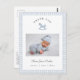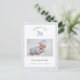Cute and simple Blue and white baby boy Birth announcement postcard with photo with gingham border and a modern rocking horse silhouette.