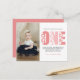 Moderne, simple et élégant fille premier anniversaire merci carte postale. Design avec typographie rose vif un, message de remerciement et une photo.