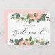 Invitation vos amis et votre famille pour être votre demoiselle d'honneur avec notre élégante carte Blush Spring Floral "Will You Be My Bridesmaid?" La carte de femme de ménage comporte une bordure supérieure de fleurs d'aquarelle et de verdure dans les tons rose, blanc et vert. Ajoutez un message personnel à l'arrière. Conçu pour coordonner avec notre collection de mariages florale de printemps de Blush.