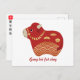 Carte Postale Boeuf rouge mignon, Nouvel An chinois de l'Ox
