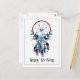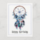 Attrape-rêve boho avec des fleurs et des plumes dans des nuances de bleu, vert, violet dans un design à l'aquarelle. Texte manuscrit décontracté noir 'Joyeux Anniversaire' peut être modifié en cliquant sur le bouton 'personnaliser' pour ajouter votre propre texte et/ou nom. Pour ajouter du texte supplémentaire, cliquez sur 'modifier le design', puis sur 'texte' et tapez vos propres mots, et vous pouvez également changer la couleur de la bordure bleue ou la supprimer si vous le préférez. La carte générique peut être utilisée pour n'importe quelle occasion spéciale.