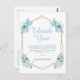 Remerciez vos invités d'avoir assisté à votre fête prénatale ou d'avoir offert un cadeau attentionné pour votre bébé garçon. Envoyez ces jolies cartes de remerciement pour une fête prénatale avec des fleurs bohèmes bleues pour exprimer votre gratitude. Ces cartes de remerciement pour une fête prénatale de bébé garçon présentent un élégant double cadre géométrique en faux or avec de beaux bouquets de fleurs bleues avec des touches de vert et de crème. Personnalisez avec un mot de remerciement, votre adresse de retour au dos et vos signatures.
