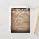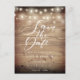 Carte Postale Bois rustique Éclairage Script Enregistrer la date