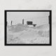 Photo en noir et blanc d'une boîte aux lettres noire sur une clôture entourée de plusieurs pieds de neige.