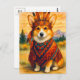 Cute Corgi American Indian Summer Citrouille Pie Witcher Bon thanksgiving Feuilles Light Halloween Automne Carte postale pour la traversée