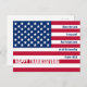 Carte postale élégante et patriotique pour Thanksgiving, montrant le drapeau américain des Etats-Unis avec un verset de la Bible chrétienne personnalisable tiré de Psaume 103:2 - "Bénissez le Seigneur, ô mon âme, et n'oubliez aucun de ses avantages." Le libellé apparaît sur les bandes blanches du drapeau Stars and Stripes sur le côté droit. "Bon thanksgiving" apparaît comme une typographie blanche sur l'une des bandes rouges dans le coin inférieur gauche. Au contraire, il y a un simple salutation, qui est personnalisable, de sorte que vous pouvez ajouter votre propre message personnalisé et ajouter votre nom. Créez votre propre salutation unique sur une sélection de cartes Bons thanksgivings de Berean Designs que vous pouvez envoyer à la famille, aux amis et aux clients pour les célébrations de Thanksgiving aux Etats-Unis. Partie de la collection USA.
