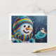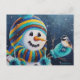 Carte Postale Bonhomme de neige d'hiver nourrissant un mésange à