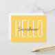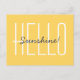 Envoyez un peu de luminosité avec cette carte postale joyeuse « Bonjour Soleil » avec une typographie blanche et bleue nuit sur un fond jaune vibrant. Le design moderne et mignon est parfait pour dire bonjour, penser à vous, envoyer du soutien ou contacter un ami. Personnalisez les couleurs ou le texte pour le rendre unique.