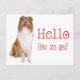 Aww...Qui peut résister au visage doux d'un Chien Chien Chien Cole ? Cette carte postale de voeux amusante présente un joyeux petit Collie bronzé et crémeux avec un Hello, comment vous saluez imprimé dans une police de coeur rouge amusante surlignée contre un arrière - plan blanc immaculé. Les cartes postales de voeux sont l'alternative économique à une carte de voeux lorsque vous voulez envoyer une note rapide pour informer quelqu'un de votre pensée à leur sujet. Bonjour les cartes postales sont amusantes pour..... Agences de secourt et d'adoption de chiens Salutations - Amitié, Penser à vous, vous manquant, etc. Affaires - vétérinaires, toiletteurs, éleveurs, formateurs, etc Notes personnelles Autres produits et cadeaux Collie que vous pouvez apprécier...
