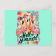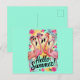 Carte Postale Bonjour été mignonne Flamant rose plage vacances T