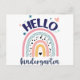 Bonjour jardin d'enfants Retro Arc-en-ciel pour enseignants filles Carte postale, Retour à l'école Carte postale, Carte postale du premier jour de l'école, prêt à écraser Carte postale