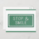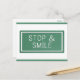 L'attitude est tout ! Cette carte postale de motivation amusante vous aidera à égayer la journée de quelqu'un. La carte postale comporte la citation "Stop and Smile" mise en surbrillance contre un joli arrière - plan vert et blanc. Les cartes postales sont une alternative économique aux cartes de voeux lorsque vous voulez envoyer une note rapide. Les cartes postales vierges sont excellentes pour de nombreuses occasions.... Communiquer avec les clients et les clients Notes personnelles Montrer de la gratitude aux amis et à la famille pour les cadeaux Mariages et douches nuptiales Joignez-vous à des paniers cadeaux, et des sacs de bonté Quelques autres cartes postales que vous pouvez apprécier... <br