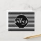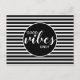 Commencez la journée avec un peu de positivité avec cette carte postale moderne «Bonne ambiance uniquement». Le design à rayures noir et blanc gras et la typographie épurée créent une apparence fraîche et élégante parfaite pour l'encouragement, les notes quotidiennes ou le courrier inspirant. Personnalisez les couleurs ou le texte dans l'outil de conception de Zazzle pour le rendre unique.