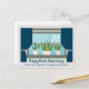 Une belle carte postale d'anniversaire joyeuse à la maison avec une jolie fenêtre remplie de mignons plantes succulents. La fenêtre est couverte de beaux draps bleus au-dessus de votre texte de société personnalisé. Une belle carte postale de marketing d'affaires immobilière pour les clients précédents.