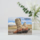 This is a wonderful photograph of western cowboy boots, complete with custom made spurs and a scenic sky in the background. The spurs are made from authentic 1880's era Mexican peso's, and say "Yeeha". All the text, front and back, is easy to customize.