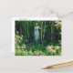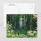 Carte postale d'art raffiné avec le tableau, Edge of the Woods (1921) de Charles Courtney Curran (1861-1942), artiste impressionniste américain. Un paysage représentant une femme en robe bleue parmi les arbres dans les bois, avec des buissons de lauriers de montagne portant des fleurs roses au premier plan.