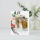 Wish your familiy and friends a happy holiday with our festive Winter Botanicals holiday photo. The holiday card postcard displays your photo framed in white with bouquets of red and pink painted flowers with green leaves and gold accents. Personalize the front by adding the current year, a custom greeting and your name. The back features space for your return address and custom message.