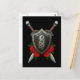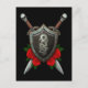 Carte Postale Bouclier dragon chinois usé et épées avec Roses