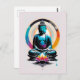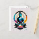 Une statue de Bouddha est installée au milieu d'un cercle zen coloré, avec une fleur de lotus.
