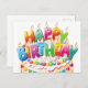 Carte postale de gâteau d'anniversaire et de bougies mignonne et colorée. Envoyez ceci à quelqu'un pour lui souhaiter un joyeux anniversaire et égayer sa journée.